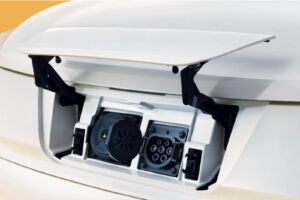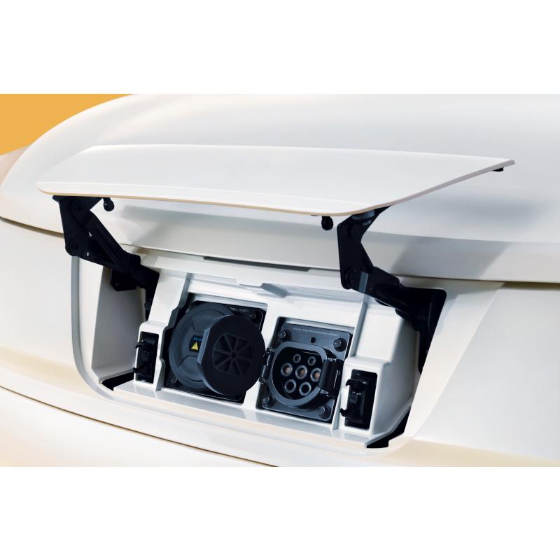 ចង្កៀងមុខរាងអក្សរ C មានរូបរាងបុគ្គលជាងមុន ដោយមានស្លាកសញ្ញាម៉ាកនៅកណ្តាល និងចំណុចប្រទាក់សាកថ្មលាក់នៅខាងក្រោយ។